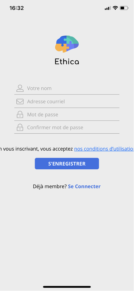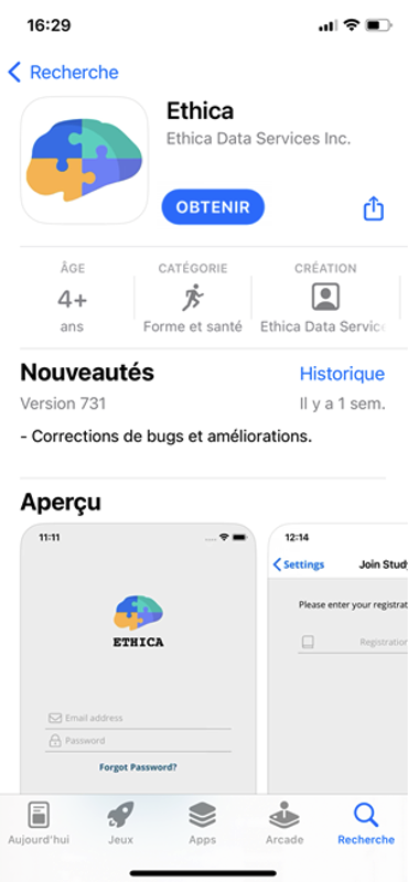 Va sur l’application Google Play Store (Android) ou sur l’App Store (iPhone) et installe l’application Ethica: