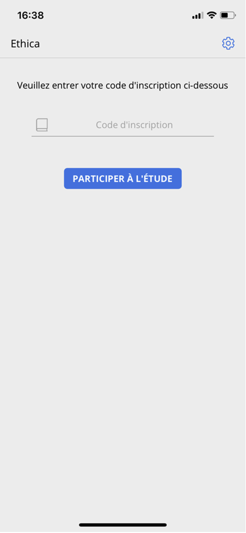 Saisis le code d’inscription que tu recevras lors de ta participation au petit questionnaire d’introduction. Puis clique sur « Participer à l’étude »