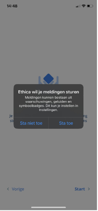 Sta toe dat de app je meldingen stuurt (dit is namelijk belangrijk om de vragenlijsten te kunnen ontvangen).