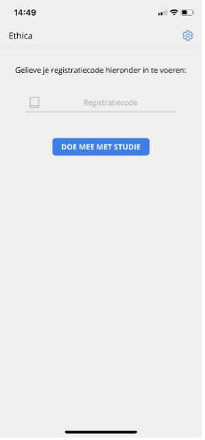 Daarna wordt er gevraagd om de registratiecode in te vullen, deze code zal je na je deelname aan de introductievragenlijst krijgen. Je mag de app dus nu sluiten.