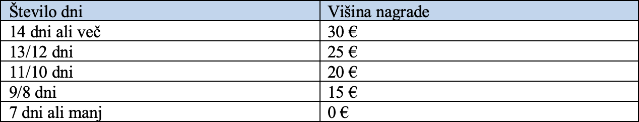 - Vrednost darilnega bona je odvisna od števila dni, ko so udeleženci/-ke sodelovali/-e v študiji: